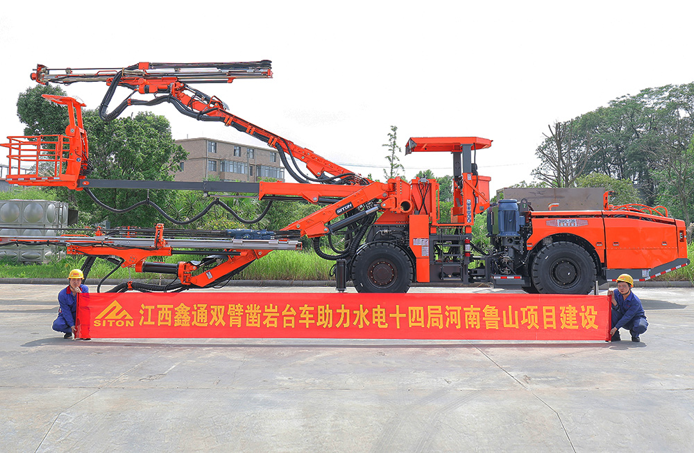 鑫通雙臂鑿巖臺車助力水電十四局河南魯山建設(shè)項(xiàng)···