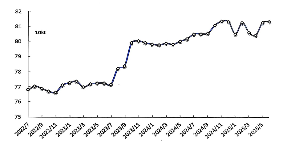 經(jīng)調(diào)整,6月份產(chǎn)量為364.5萬噸;預(yù)計(jì)7月份產(chǎn)量為376.9萬噸,同比增長1.5%,日均產(chǎn)量12.16萬噸,環(huán)比小幅增長0.07%。